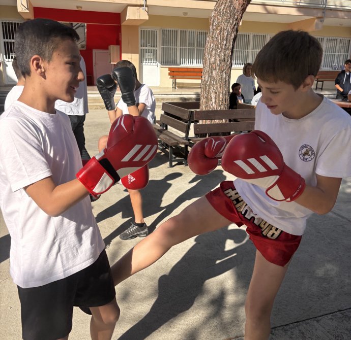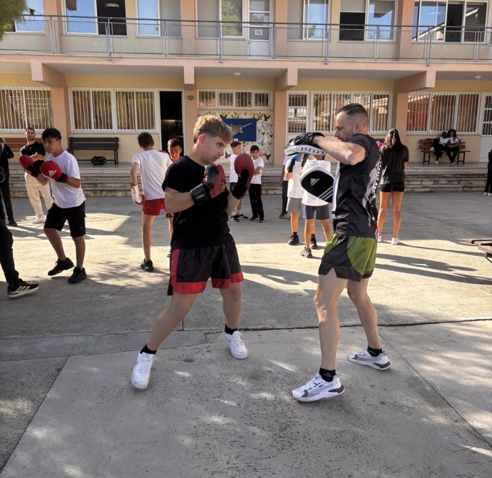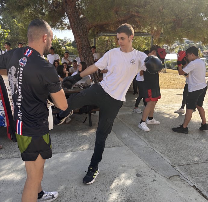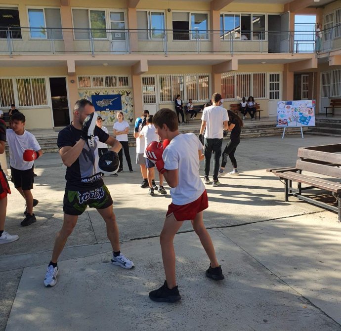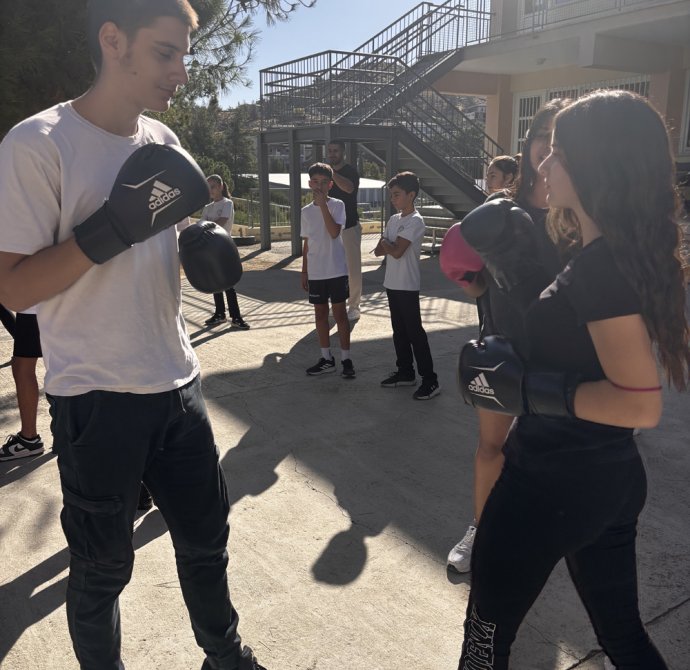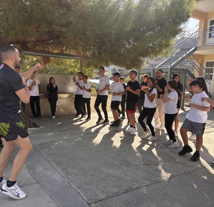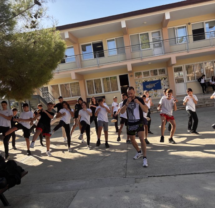 Σε ένα από τα διαλείμματα οι μαθητές και οι μαθήτριες συμμετείχαν σε μια ευχάριστη μουσικοχορευτική δράση στην εσωτερική αυλή. Η δράση σχεδιάστηκε από το χοροδιδάσκαλο Λούη Παναγιώτου του χορευτικού συγκροτήματος «Βούρκα», συνδυάζοντας άσκηση, δημιουργικότητα και διασκέδαση , δίνοντας σε όλους την ευκαιρία να συμμετάσχουν ενεργά. Ένα άλλο διάλειμμα είχαν την ευκαιρία να γνωρίσουν το άθλημα του Kick Boxing με τη καθοδήγηση του καλεσμένου μας γυμναστή Θεοδόση Θεοδοσίου. Ομάδα παιδιών του σχολείου μας έκαναν μια επίδειξη κι ακολούθως όσα παιδιά επιθυμούσαν δοκίμασαν τις ικανότητες τους. Η εβδομάδα ολοκληρώθηκε με την ευκαιρία που είχαν τα παιδιά να γνωρίσουν το άθλημα του Rugby το οποίο τους δίδαξαν οι Rick Wadmore και Dave Lee.