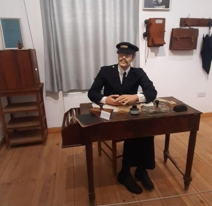 Στο μουσείο μας υποδέχτηκε ο υπεύθυνος, ο οποίος μας ξενάγησε στο χώρο.Εκεί παρακολουθήσαμε σύντομο βίντεο, το οποίο ήταν πολύ ενημερωτικό και βγάλαμε φωτογραφίες τις οποίες θα μελετήσουμε για την εργασία μας.