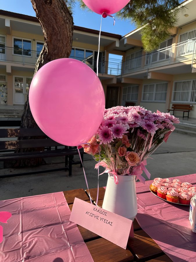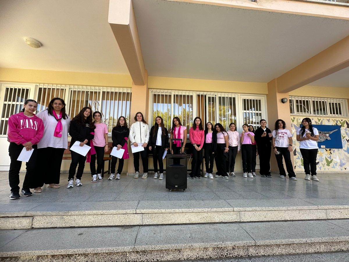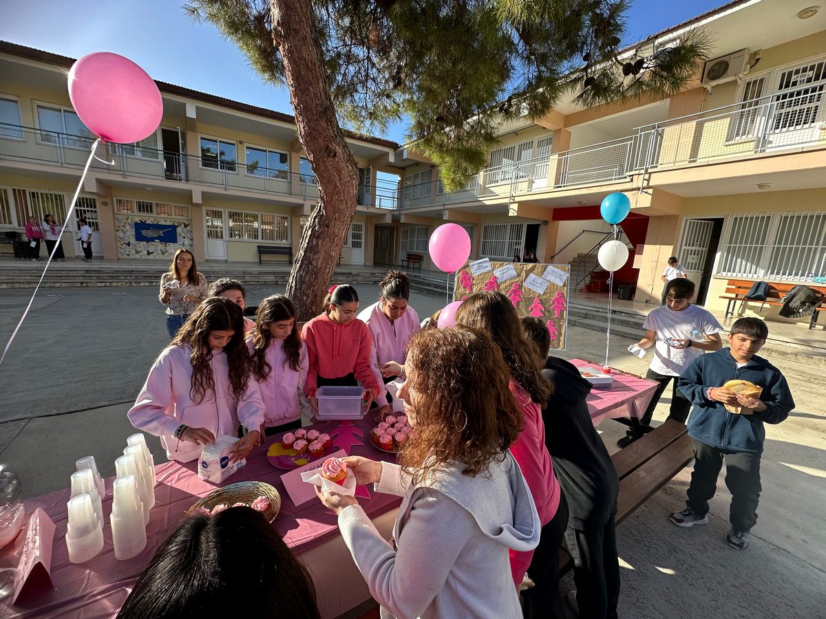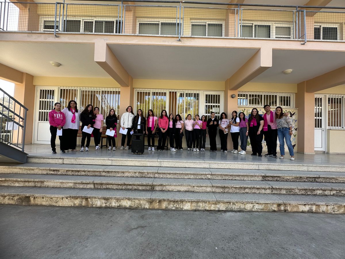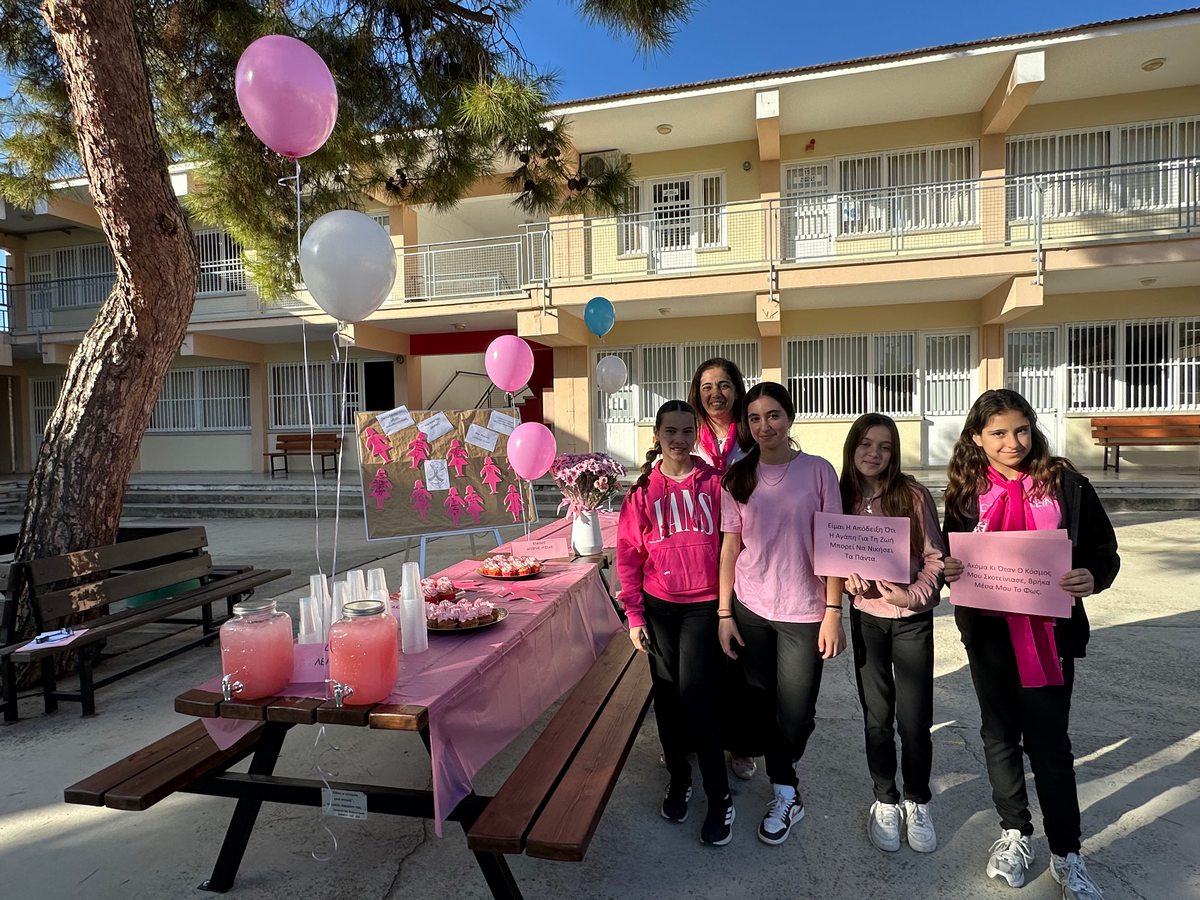 25 Οκτωβρίου! Παγκόσμια Ημέρα κατά του Καρκίνου του Μαστού. Το Γυμνάσιο Σολέας δεν θα μπορούσε να μείνει ασυγκίνητο με όλους αυτούς τους ανθρώπους που δίνουν τον δικό τους καθημερινό και δύσκολο αγώνα. Ο κλάδος Αγωγής Υγείας οργάνωσε στις 24 και 29 Οκτωβρίου 2025 με μεγάλη επιτυχία διάφορες δράσεις για να μπορέσουν όλα τα παιδιά να στείλουν το δικό τους μήνυμα συμπαράστασης και να ενημερωθούν σωστά κατανοώντας ότι η πρόληψη είναι καλύτερη από τη θεραπεία. Με περπάτημα, γλυκά, χορό και αφηγήσεις στείλαμε το δικό μας μήνυμα αγάπης κι αλληλεγγύης. Δόθηκαν σε όλες τις γυναίκες που εργάζονται στο σχολείο μας λουλούδια με το δικό μας μήνυμα ευαισθητοποίησης και προβληματισμού. Μαθητές τις τρίτης τάξης συγκίνησαν με το σχηματισμό τους στέλνοντας το δικό τους μήνυμα ότι: «Δεν παλεύεται μόνες σας, είμαστε κι εμείς μαζί σας».