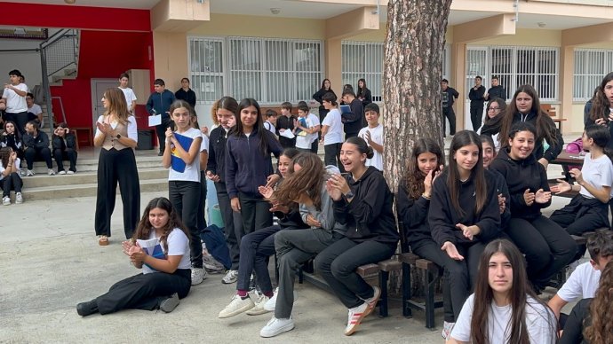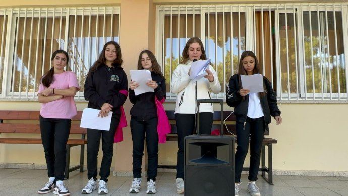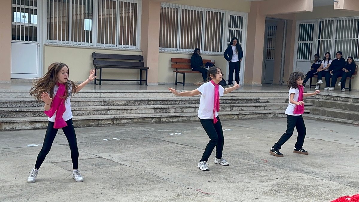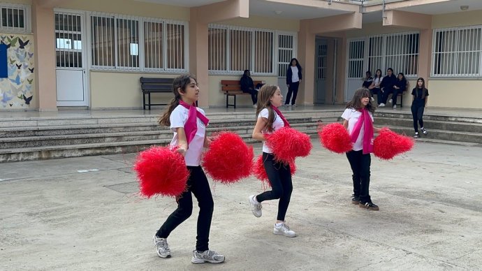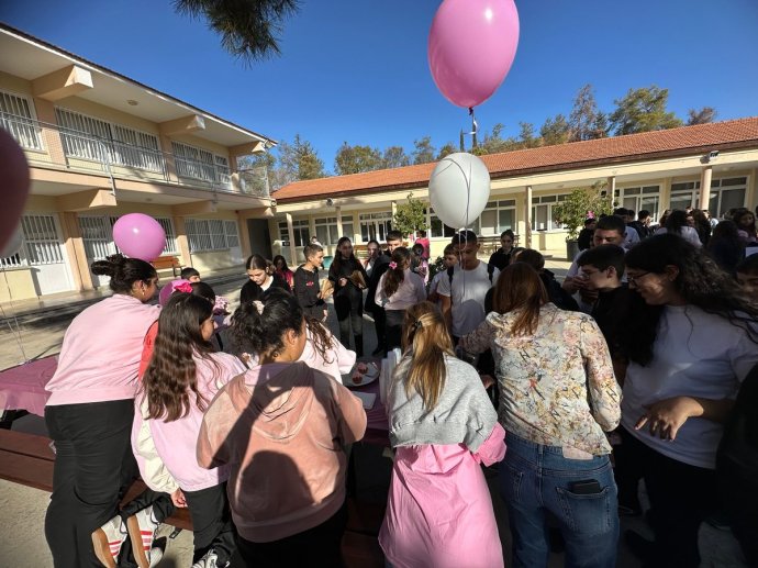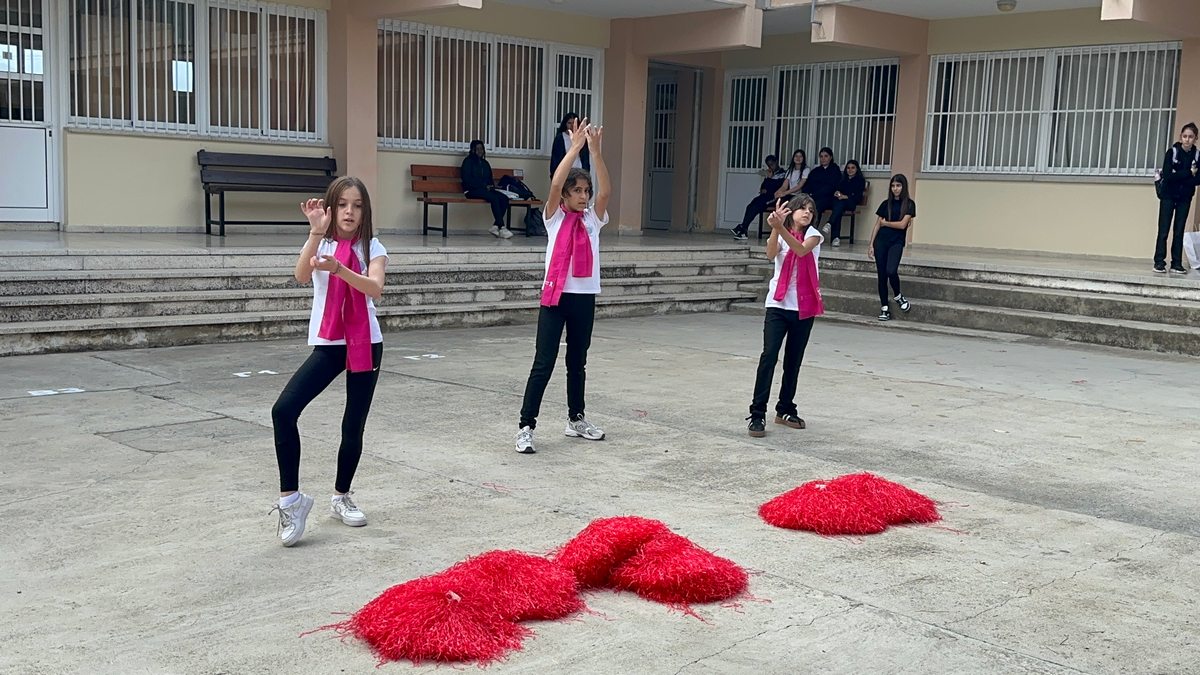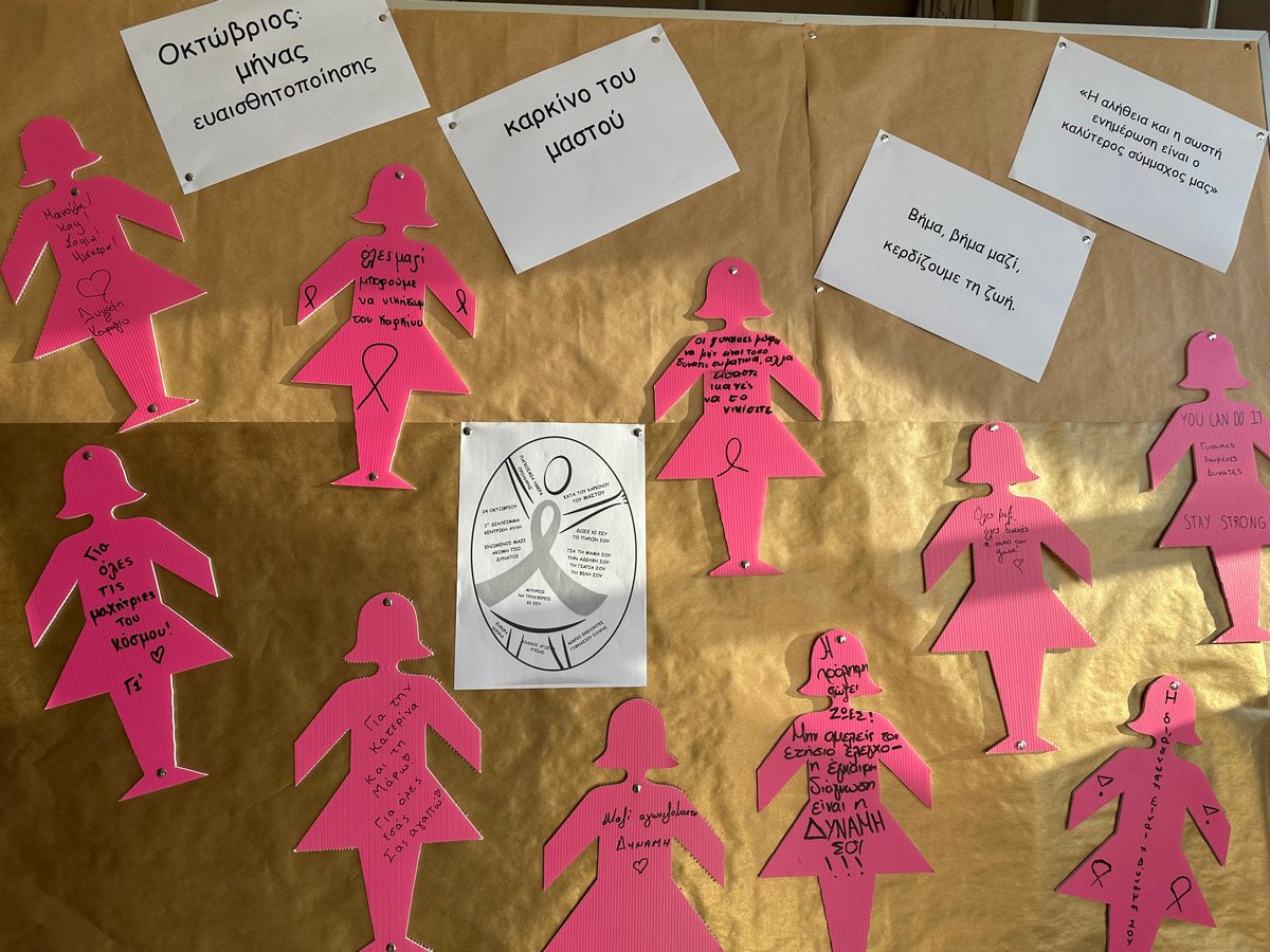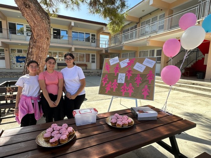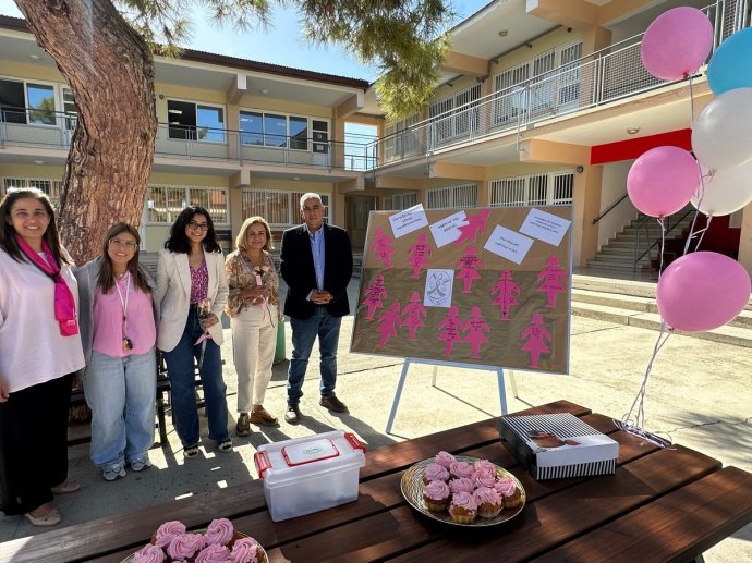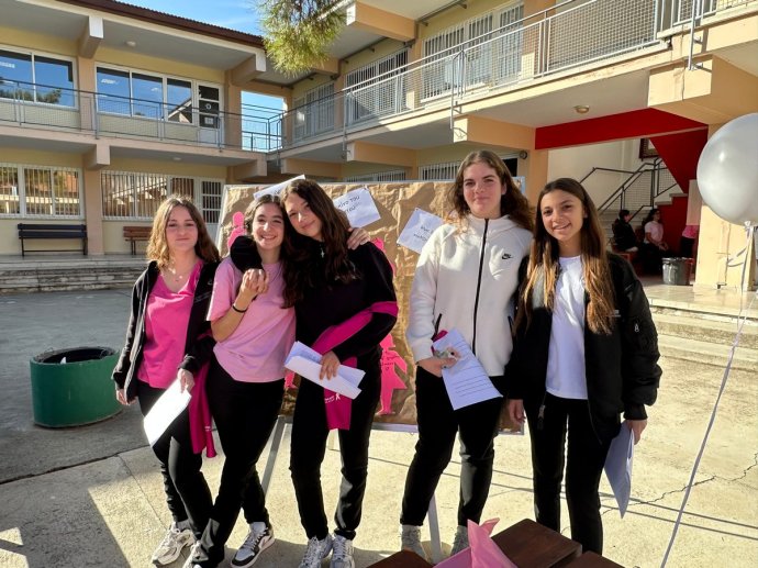 25 Οκτωβρίου! Παγκόσμια Ημέρα κατά του Καρκίνου του Μαστού. Το Γυμνάσιο Σολέας δεν θα μπορούσε να μείνει ασυγκίνητο με όλους αυτούς τους ανθρώπους που δίνουν τον δικό τους καθημερινό και δύσκολο αγώνα. Ο κλάδος Αγωγής Υγείας οργάνωσε στις 24 και 29 Οκτωβρίου 2025 με μεγάλη επιτυχία διάφορες δράσεις για να μπορέσουν όλα τα παιδιά να στείλουν το δικό τους μήνυμα συμπαράστασης και να ενημερωθούν σωστά κατανοώντας ότι η πρόληψη είναι καλύτερη από τη θεραπεία. Με περπάτημα, γλυκά, χορό και αφηγήσεις στείλαμε το δικό μας μήνυμα αγάπης κι αλληλεγγύης. Δόθηκαν σε όλες τις γυναίκες που εργάζονται στο σχολείο μας λουλούδια με το δικό μας μήνυμα ευαισθητοποίησης και προβληματισμού. Μαθητές τις τρίτης τάξης συγκίνησαν με το σχηματισμό τους στέλνοντας το δικό τους μήνυμα ότι: «Δεν παλεύεται μόνες σας, είμαστε κι εμείς μαζί σας».