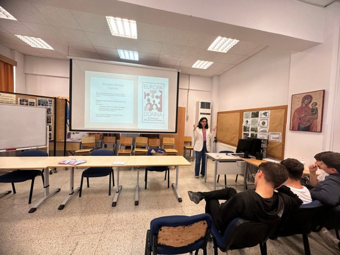 Είχαμε την ιδιαίτερη χαρά να έχουμε μαζί μας την Λουΐζα Πόλυ και Ιωάννα Ξενοφώντος, ψυχολόγο της Europa Donna η οποία έκανε διάλεξη στους μαθητές/τριες της Γ΄ τάξης με θέμα: «Μιλώντας για το καρκίνο του μαστού: ψυχοκοινωνική διάσταση».